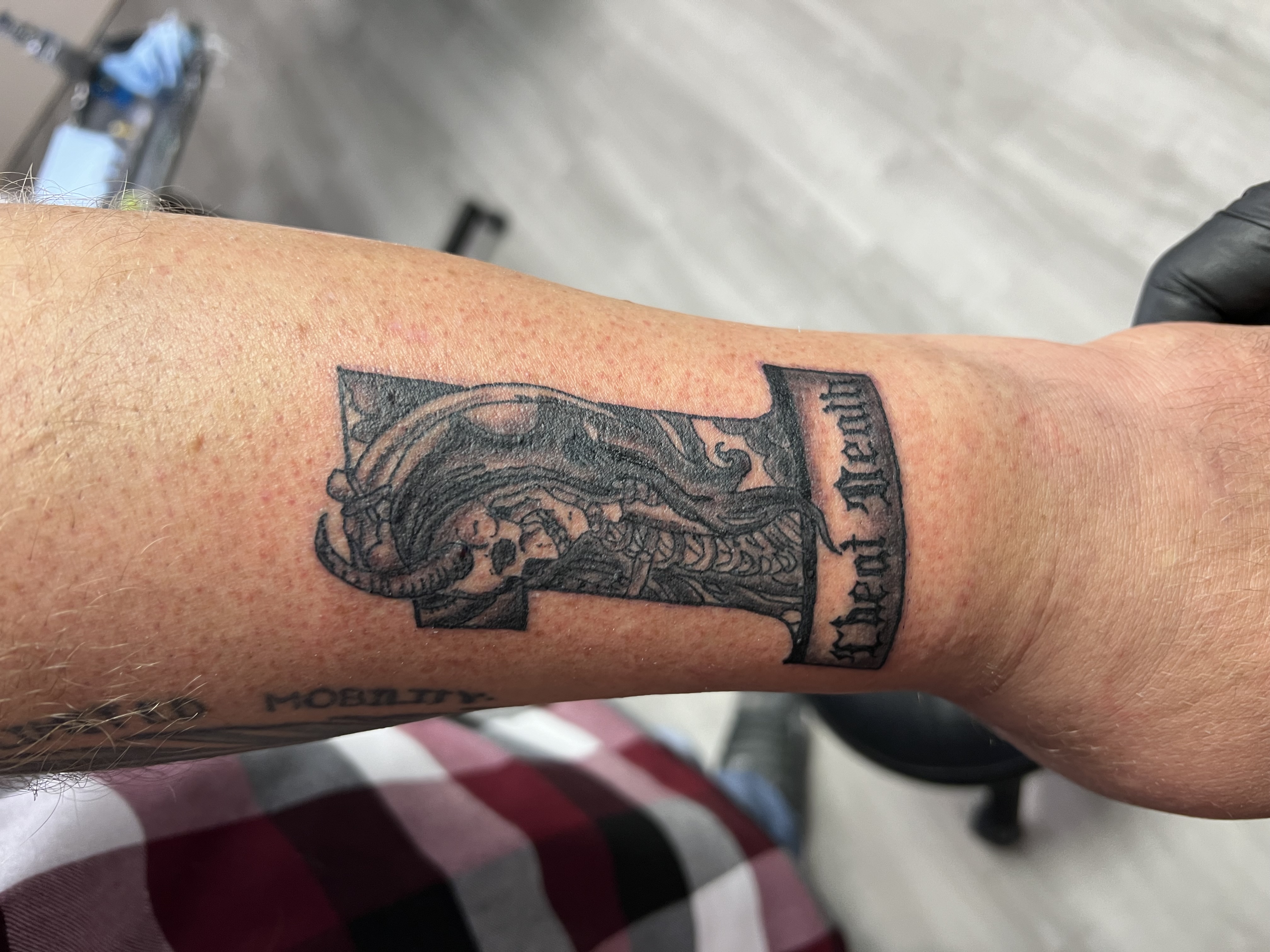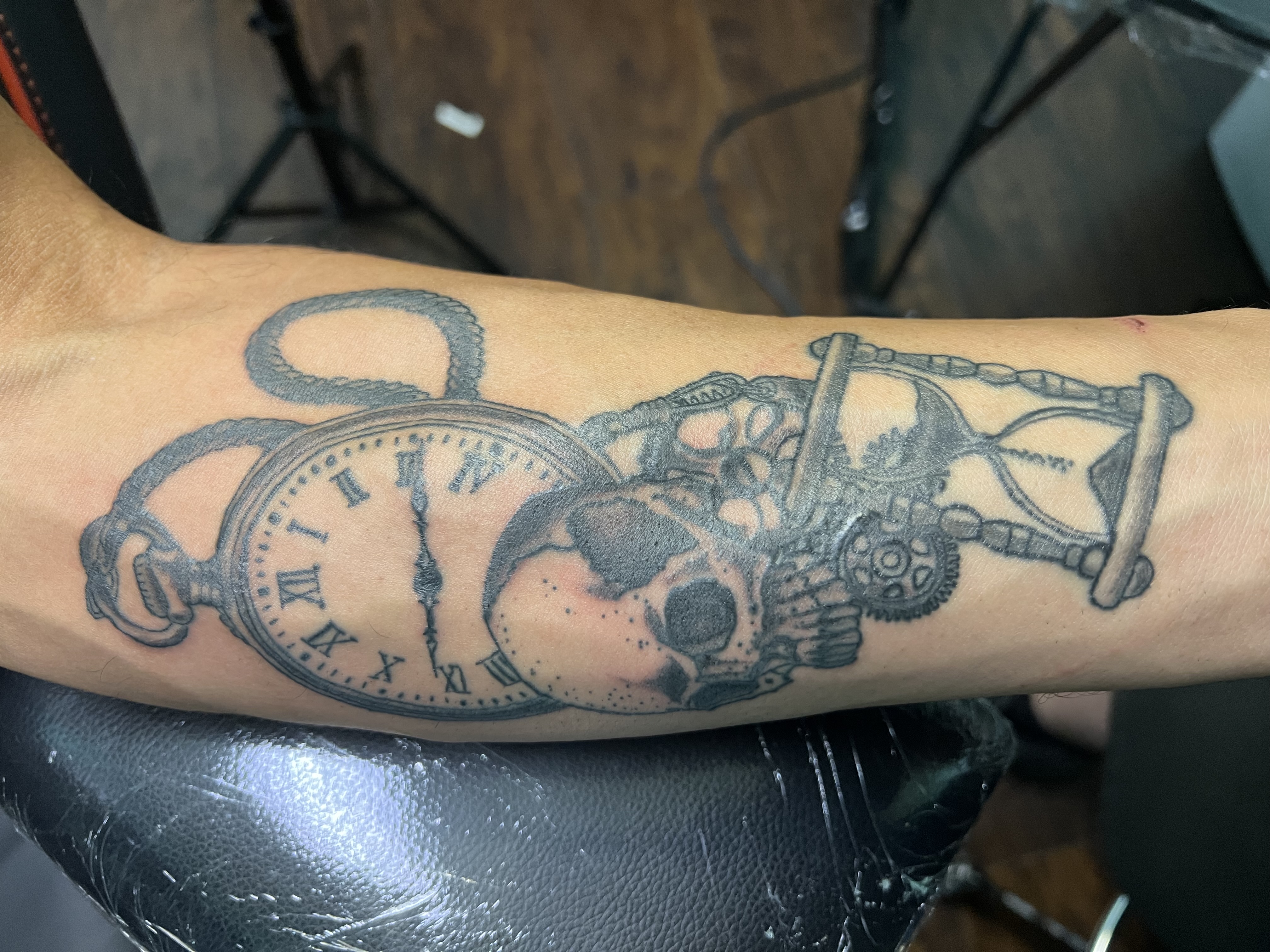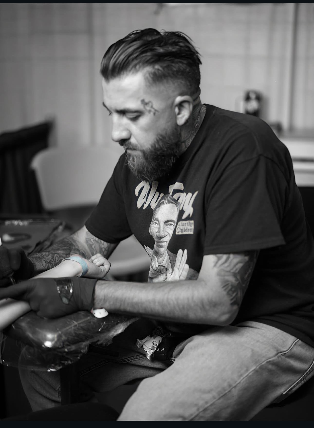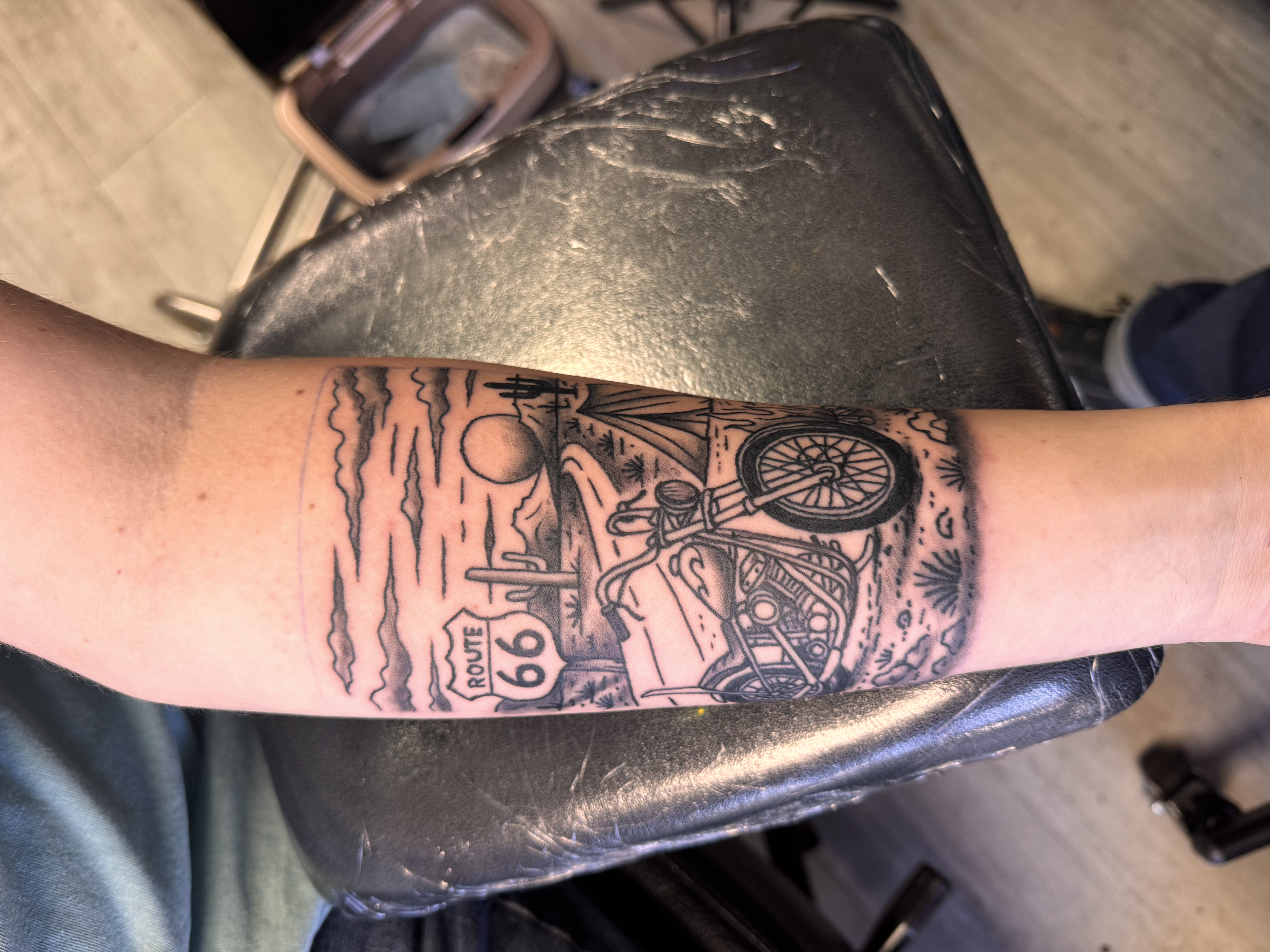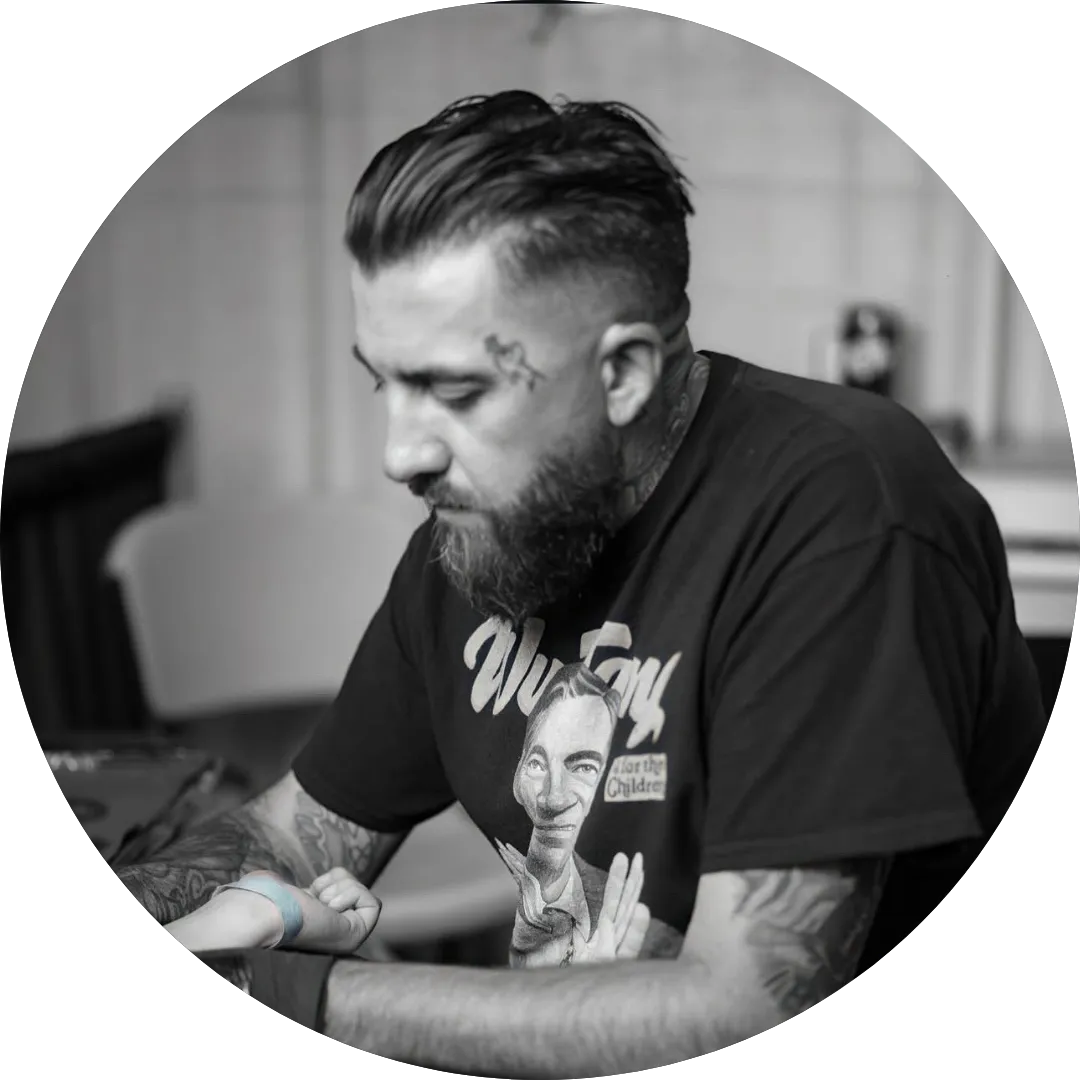 Drawing inspiration from Star Wars, motorcycles, and comic books, his work blends bold style with storytelling and custom artistry. Every tattoo is approached with professionalism and a commitment to bringing each client’s vision to life, whether it’s a small piece or a full custom project.